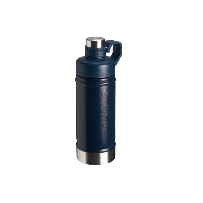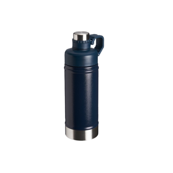 Garrafa térmica de parede dupla em inox, capacidade de 500ml. Tampa principal com bocal e tampa protetora com alça de transporte acoplada.